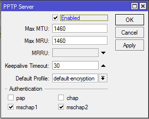 Selanjutnya di tab Dial Out, isikan parameter username dan password sesuai informasi yang diberikan oleh provider. Informasi username dan password tiap provider tentu saja berbeda. Jika sudah selesai, klik OK, maka interface PPoE client akan terbentuk dan router otomatis akan mencoba melakukan dial melalui interface PPPoE. Jika setting sudah benar dan PPPoE terkoneksi dengan baik, status PPoE Client di mikrotik akan berubah menjadi "Connected", atau flag interface menjadi "R" atau Running.